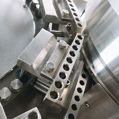3). Em alusão a pegajoso ou à fluidez o pó causa o efeito de enchimento mau, na bandeja da dosagem projetou um raspador do pó melhorar a precisão do enchimento.