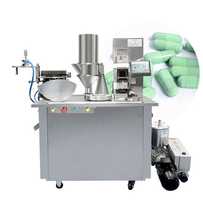 O enchimento semiautomático da cápsula tem uma instalação muito simples. As cápsulas são carregadas em um funil. Este funil pode tomar qualquer tamanho de 00 a 5. Os pós são carregados então em um funil separado. Este é um funil conduzido corkscrew, que permita uma suficiência constante durante todo cada cápsula. O operador usa então o otário do vácuo para classificar individualmente para fora e encher as cápsulas nos anéis de carregamento. Os anéis de carregamento podem ser feitos de 00 a 5 tamanhos. O operador usa então o vácuo para separar as cápsulas.