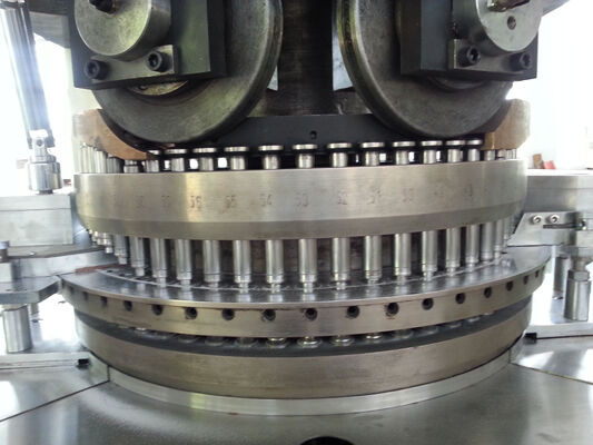 Esta máquina é uma rotação automática da imprensa dobro para o equipamento depressão, que têm a função da imprensa o material da grão ou a pulverizam para ser redondos ou as tabuletas da forma irregular, tais como doces, cálcio marcam dobro-lados com impressão da letra e etc. que extensamente apropriado para as indústrias de farmacêuticos, químicas, gêneros alimentícios, eletrônico plástico, pulveriza a metalurgia e assim por diante.