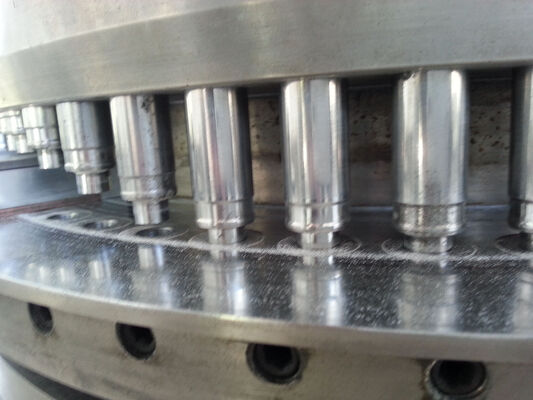 Esta máquina é uma rotação automática da imprensa dobro para o equipamento depressão, que têm a função da imprensa o material da grão ou a pulverizam para ser redondos ou as tabuletas da forma irregular, tais como doces, cálcio marcam dobro-lados com impressão da letra e etc. que extensamente apropriado para as indústrias de farmacêuticos, químicas, gêneros alimentícios, eletrônico plástico, pulveriza a metalurgia e assim por diante. A máquina adota o sistema da pressão hidráulica, assim que a pressão pode ser ajustada e entrada pelo tela táctil para a finalidade exata dos testes e da produção.