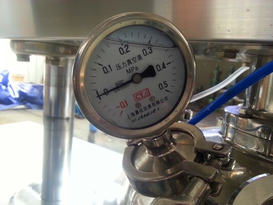 O material é agitado pela lâmina do centro e pelo raspador lateral, que funciona na superfície interna do potenciômetro que se mantém agitar materiais da colagem na parede. Em processo da lâmina-agitação, os materiais são esmagados continuamente, pressionado, dobra. O material é enviado então à unidade de mistura da interrupção onde são eliminados outra vez, quebrados e de agitações pela interação forte entre a roda de corte de corrida e de cortes a bainha. Os materiais são esmagados finalmente em pelotas pequenas de 200um~2um. Além disso, devido ao vácuo no potenciômetro de emulsão, as bolhas geraram durante a agitação e o processo de mistura é sugado para fora do material. O sistema decirculação pode fazer a homogeneização de mais forte. O material dentro do potenciômetro pode ser desprender-se somente sob o estado de sentido da mudança das válvulas de controle.