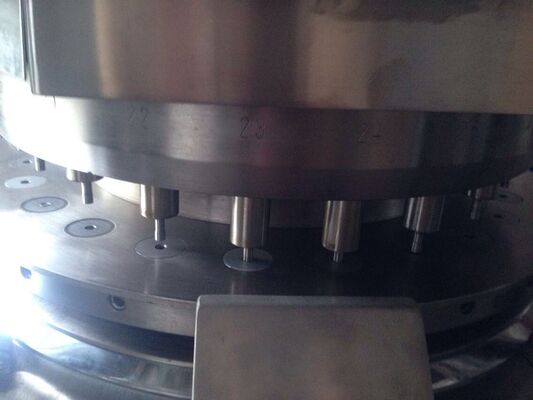 Esta máquina é uma rotação automática da imprensa dobro para o equipamento depressão, que têm a função da imprensa o material da grão ou a pulverizam para ser redondos ou as tabuletas da forma irregular, tais como doces, cálcio marcam dobro-lados com impressão da letra e etc. que extensamente apropriado para as indústrias de farmacêuticos, químicas, gêneros alimentícios, eletrônico plástico, pulveriza a metalurgia e assim por diante.