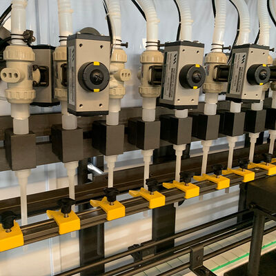 A máquina está equipada com 16 bocas de enchimento, o que permite encher até 16 garrafas ao mesmo tempo.Como ajuda a poupar tempo e aumentar a produtividadeOs bicos de enchimento também são fabricados com materiais de alta qualidade, o que garante que sejam duráveis e duradouros.