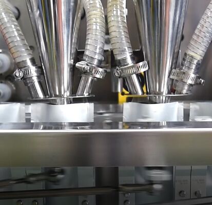 1.Filme Desenrolar 2.Bolsa Formando 3.Filme Guia 4.Fotosela5.Selo inferior 6.Selo vertical 7.Segundo selo vertical 8.Encosto de lágrima 9.Corte duplo 10.Pouch Catching 11.Pouch Catching 12.Pouch Pulling 13.Abertura do saco 14.Enchimento I 15.Enchimento II 16.Selo superior 17.Produto acabado 18.Saída
